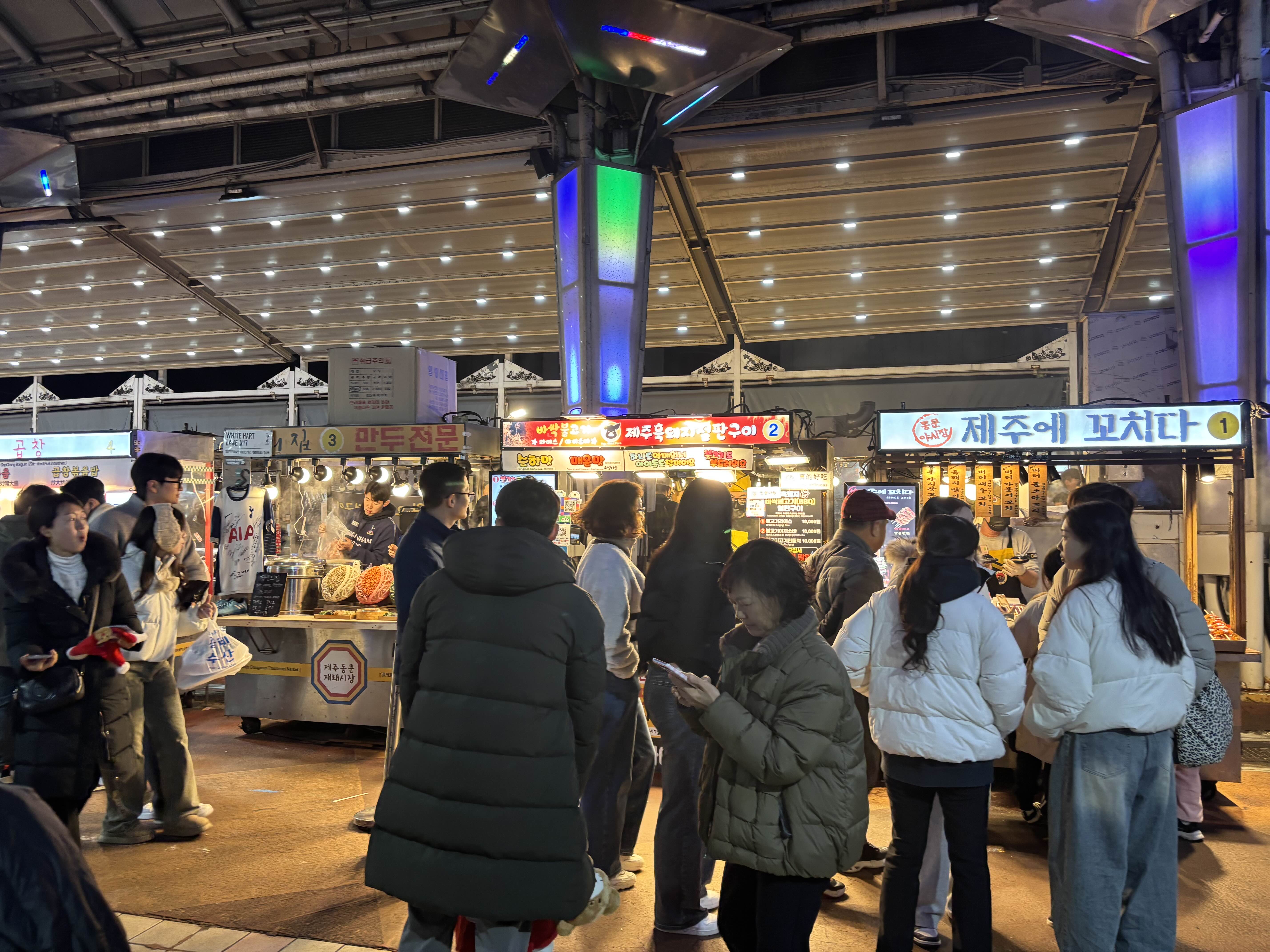 회만 포장하러 가신다면 추천하지 않지만 여러 가지 먹거리와 재밌는 야시장을 보고 싶으시다면 제주 동문시장을 추천합니다.