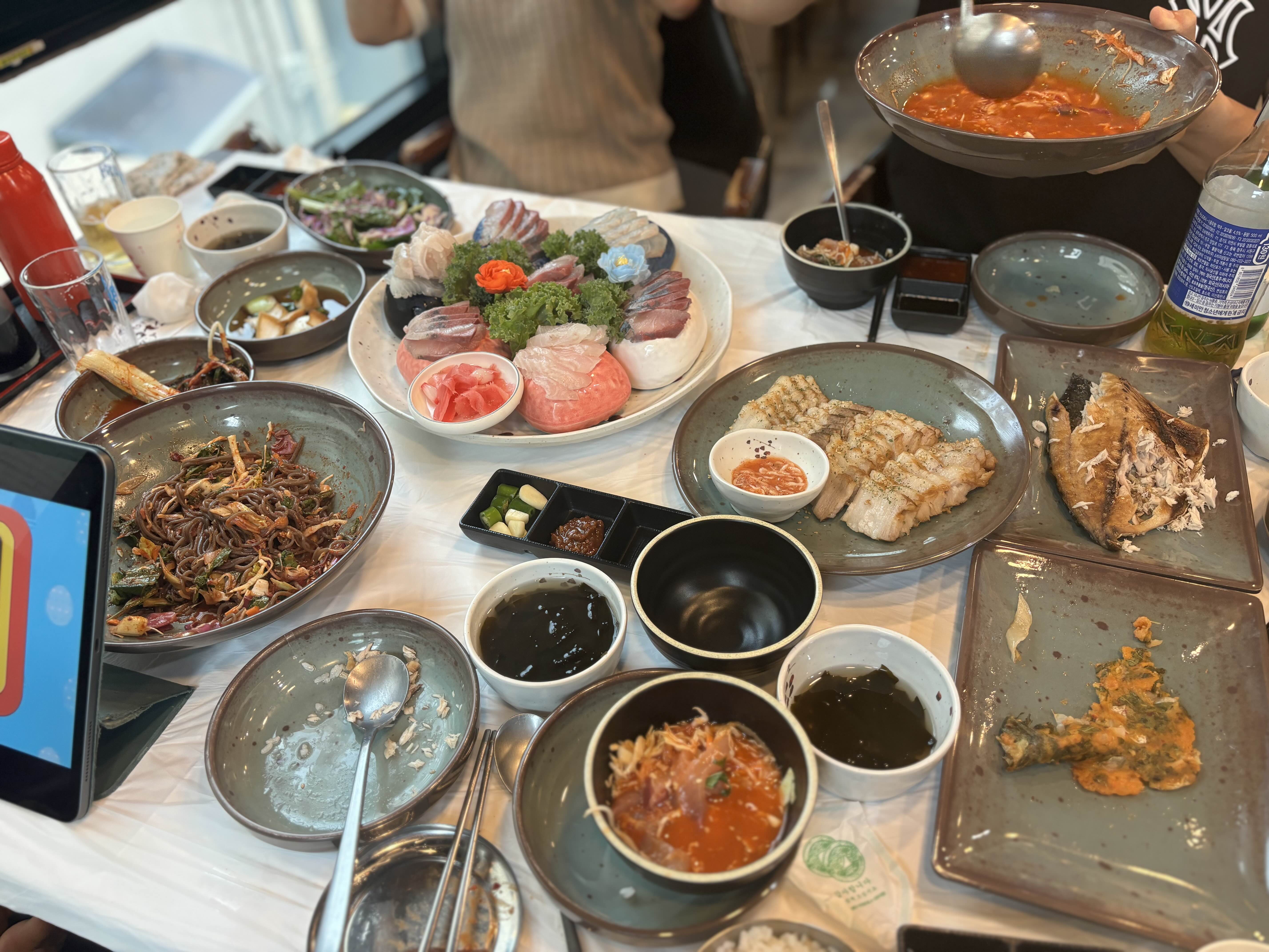 저희가 가게에 방문한 날은 평일이라 사람이 없어 한가했습니다. 자리도 널찍하여 쾌적했습니다. 기본찬들을 다 먹어 음식이 부족하여 직원에게 부탁하면 친절하게 음식도 가져다주셨습니다.