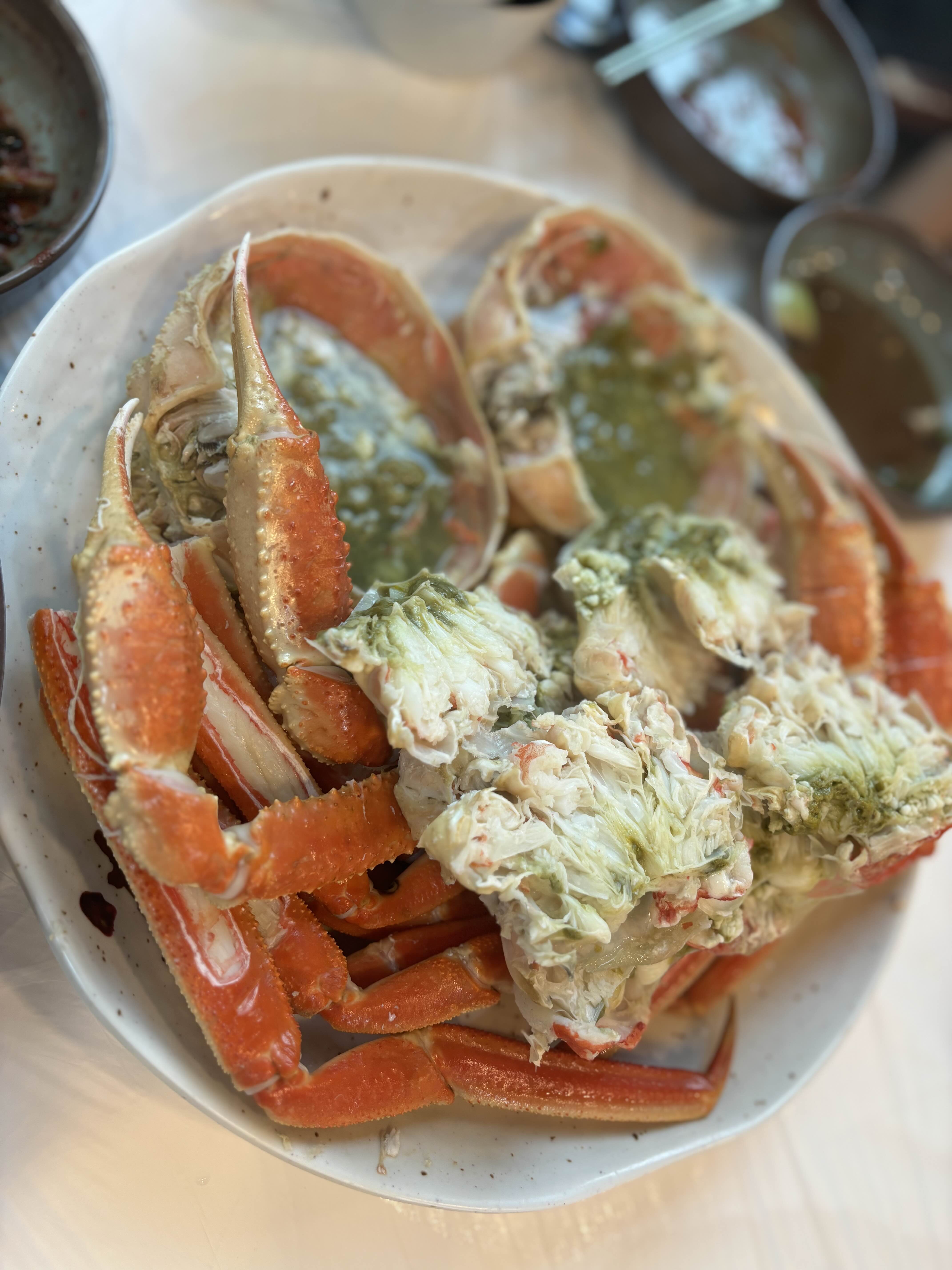 그리고 가장 중요한 대게입니다. 사진으로 보면 대게 양이 적어 보이나 실제로 먹을 때는 양이 꽤 많아 맛있게 먹었습니다. 대게 맛도 좋아서 게딱지에 밥도 맛있게 비벼먹었습니다. 살이 엄청나게 많은 것 같진 않아 이 점은 아쉬웠습니다.